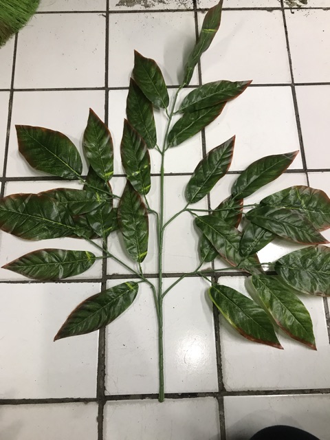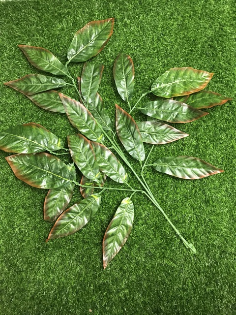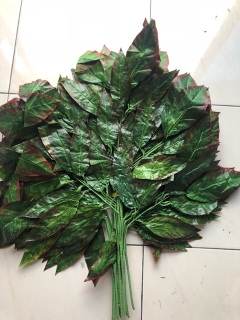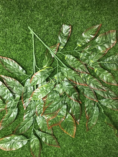 Daun Mangga Lis Merah Cabang 5 /Daun Plastik / Daun Hiasan / D-01/ 1 lusin