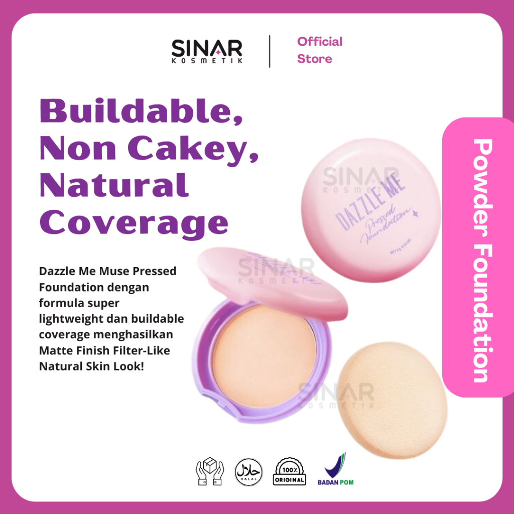 Dazzle Me Muse Pressed Foundation | Long Lasting Filter Like Blurring Matte Compact Powder Oil-control Bedak Padat