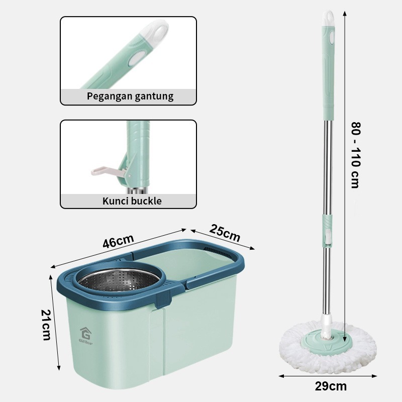 De Essential Alat Pel Peras Otomatis 2109 - Ultra Mop Aclima Spin Mop Pelan Lantai Tosca