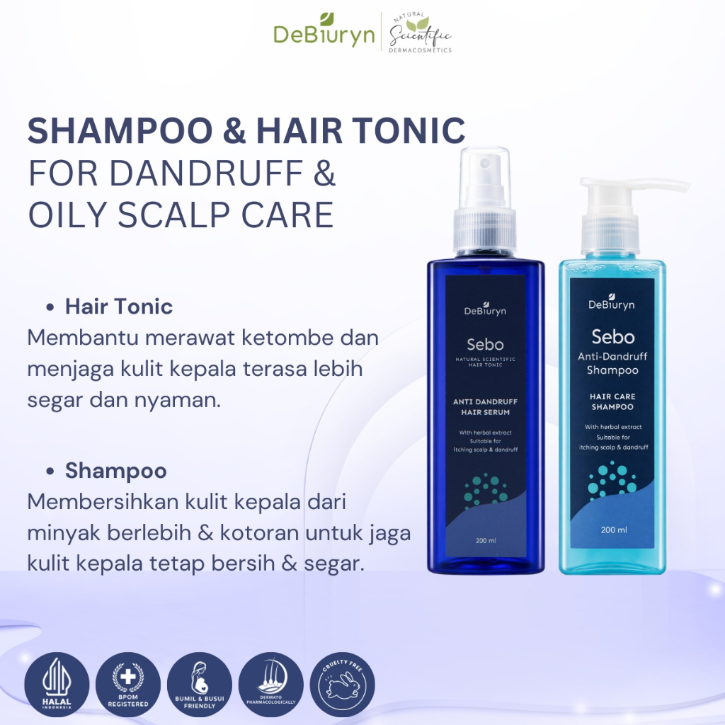 DeBiuryn Sebo Anti Dandruff Hair Tonic Serum 200ml Atasi Rambut Ketombe Kulit Kepala Gatal