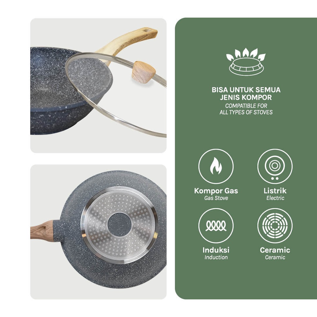 Debellin Asian Wok Pan 28 cm - Grey Granite Cookware Series atau Wajan Anti Lengket Premium