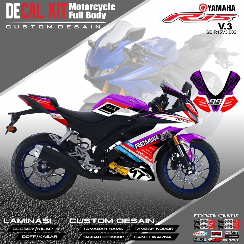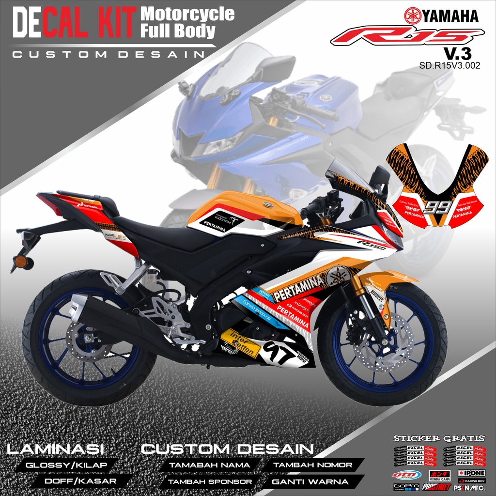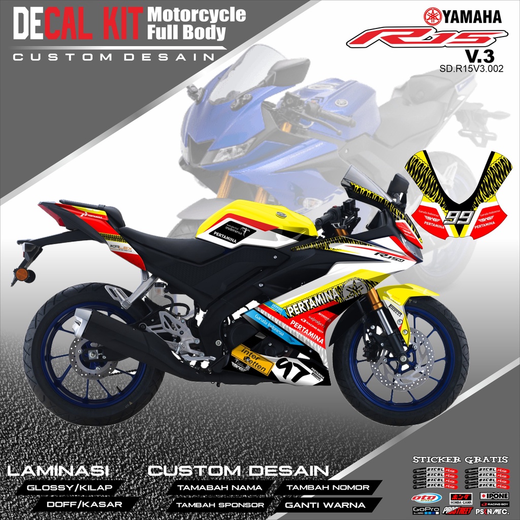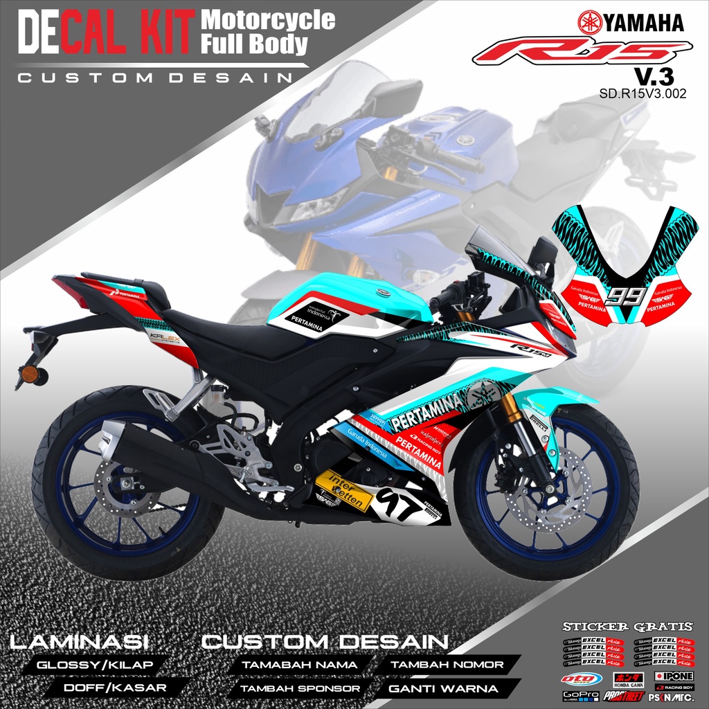 Decal R15 V3 - Dekal Stiker Striping Fullbody Fullblock List YAMAHA R15 V3 Custom Desain MANDALIKA