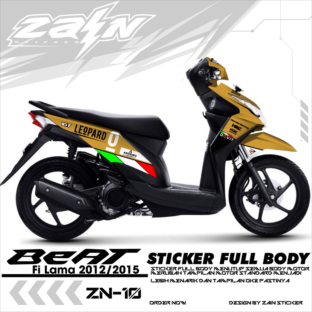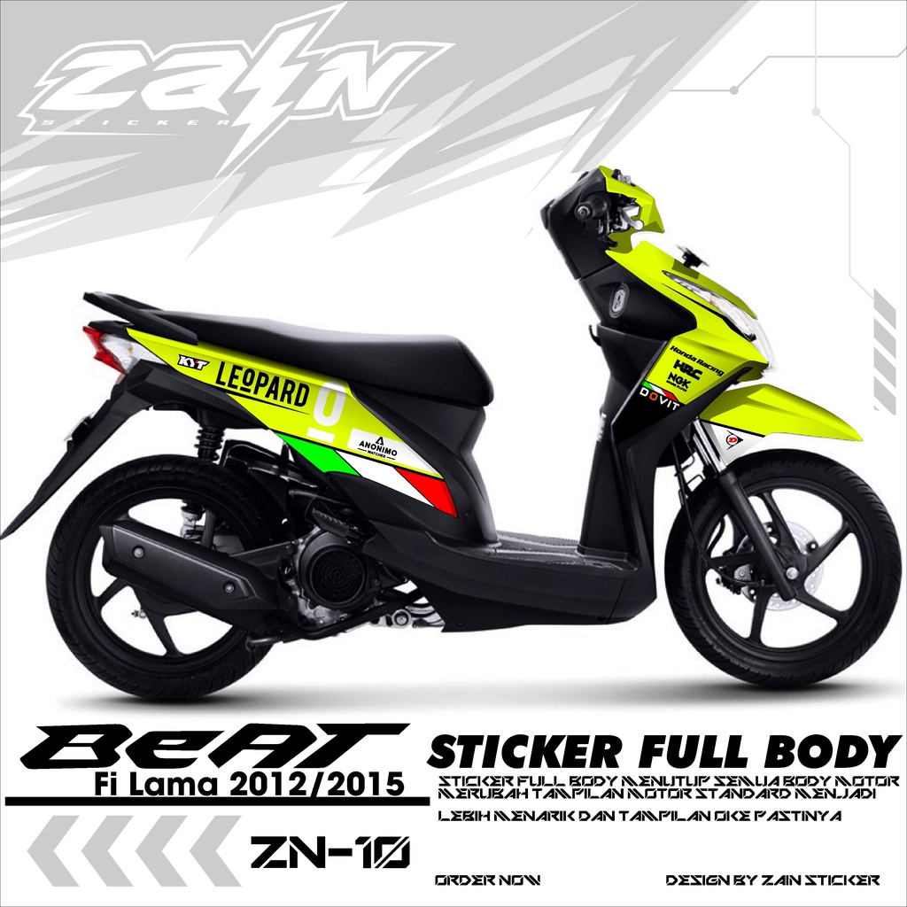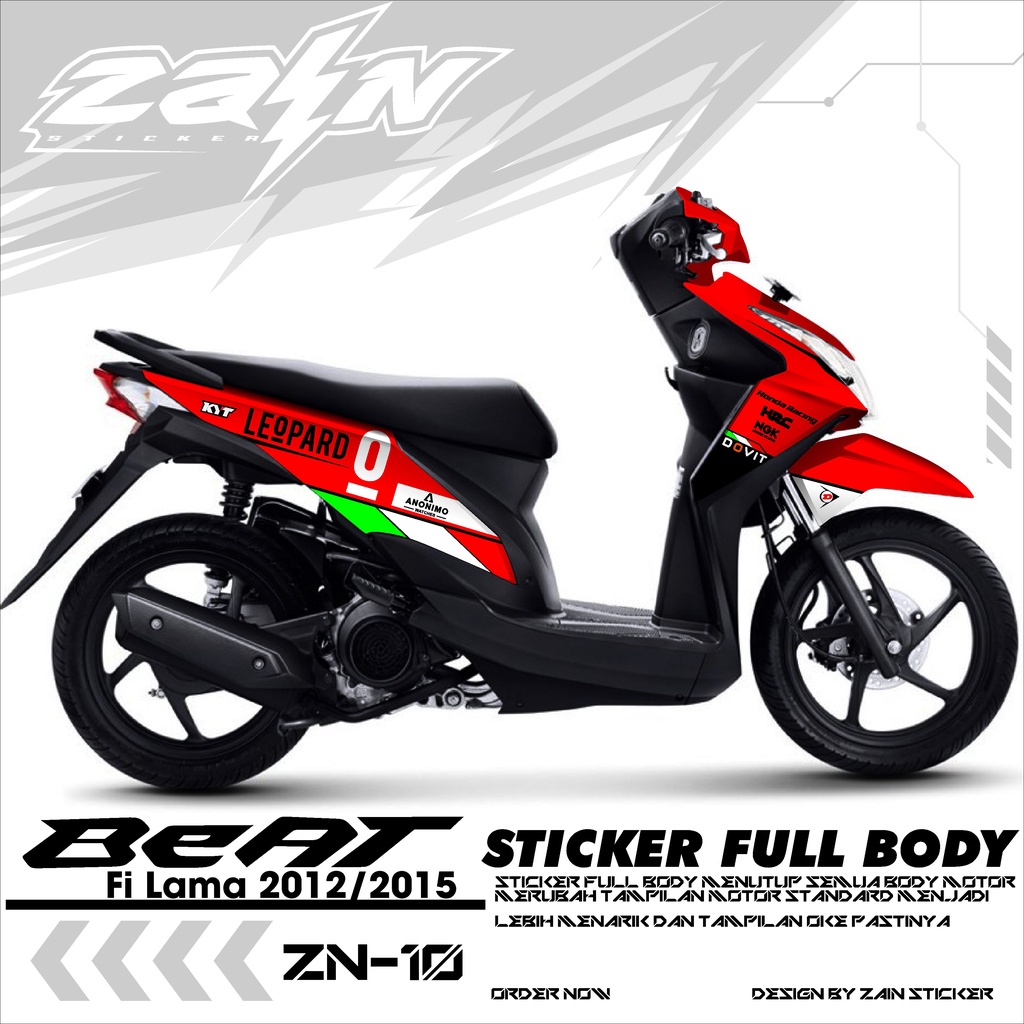 Decal Sticker Full Body Honda Beat Fi Lama/old 2012/2013/2014/2015/2016 - Stiker Fullbody Variasi List Motor Beat ZN-01 Dsain LEOPARD RACING