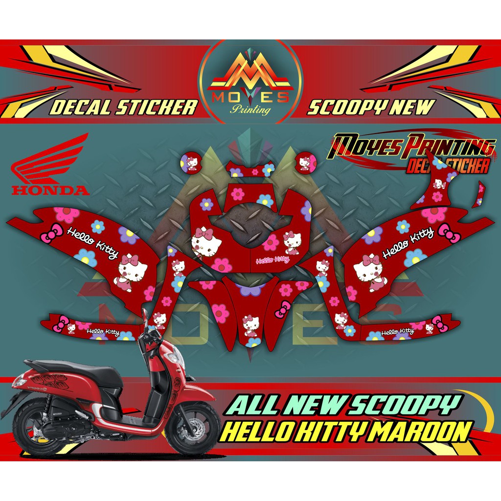 Decal Sticker Full Body Honda Scoopy - Sticker Motor All New Scoopy FI Gambar Hello Kitty Maroon