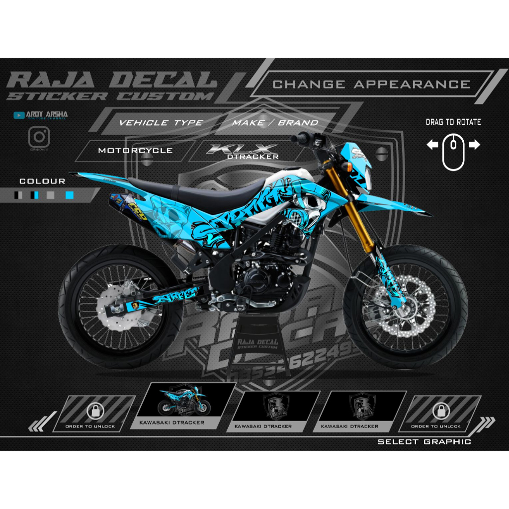 Decal Sticker Kawasaki Dtracker Fullbody-Stiker Dekal Dracker Custom Desain Graffiti kode DTX 009