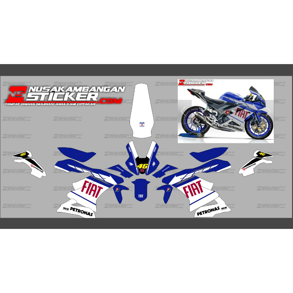 Decal Stiker Sepeda Motor Yamaha R15 V3 Full Body Biru Putih Fiat Grafis Racing Team Sticker Variasi Custom Bahan Qualitas Premium Karakter Model Tranding Keren Modis Minimalis
