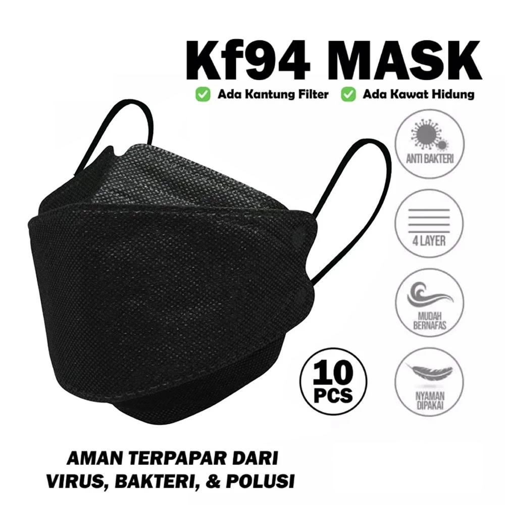 Masker KF94 4 Ply Disposable Face Mask Kesehatan Korea Kpop 4Ply (1 pack isi 10 pcs) Hitam Putih