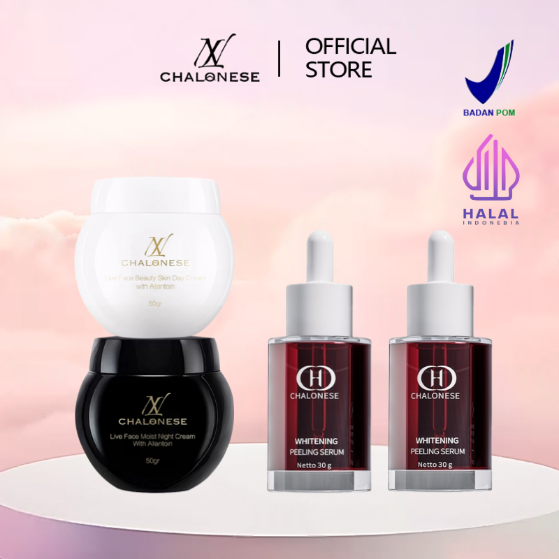 CHALONESE MOISTURIZER PEELING SET DAY & NIGHT CREAM + PEELING SERUM Mengeksfoliasi Sel Kulit Mati Membantu Membuat Wajah Lebih Lembab Cerah serta Fresh