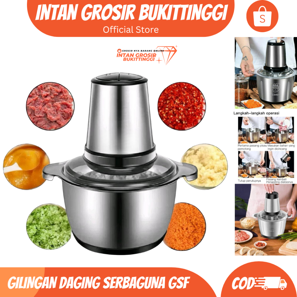 Blender Chopper Stainless Steel 2 L Penggiling Bumbu Daging Sayur Buah Food Processor