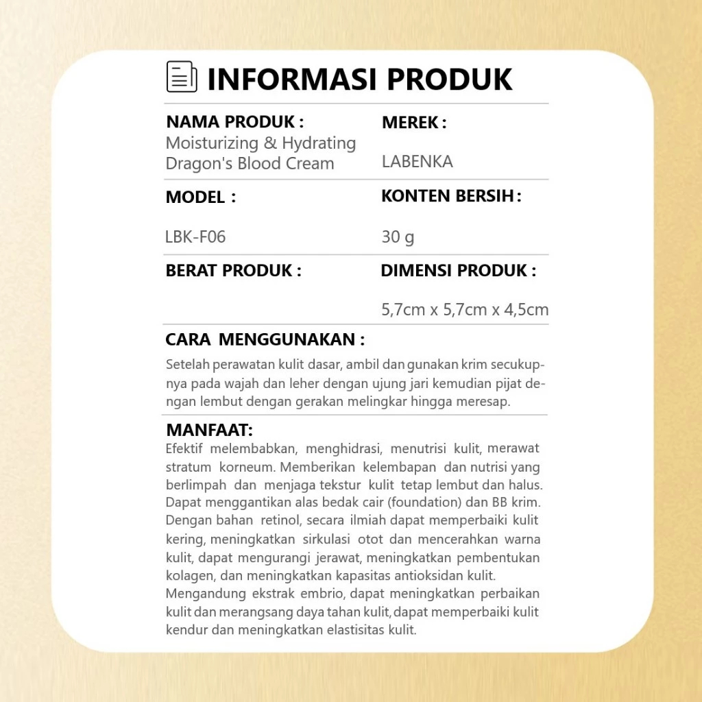 Labenka F06 Dragon's Blood Cream 30g Moisturizing & Hydrating