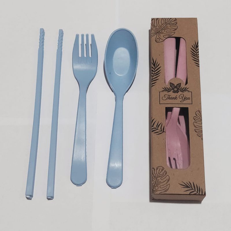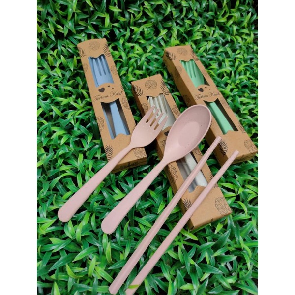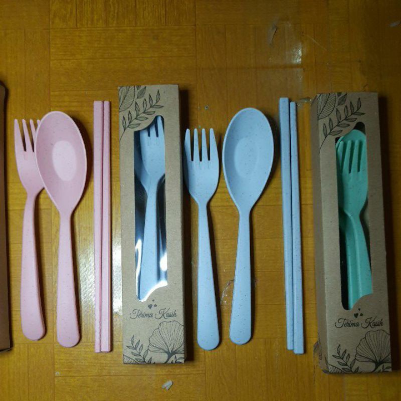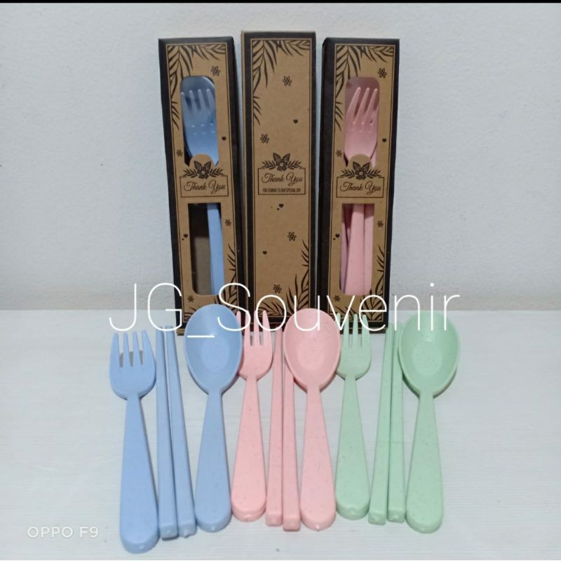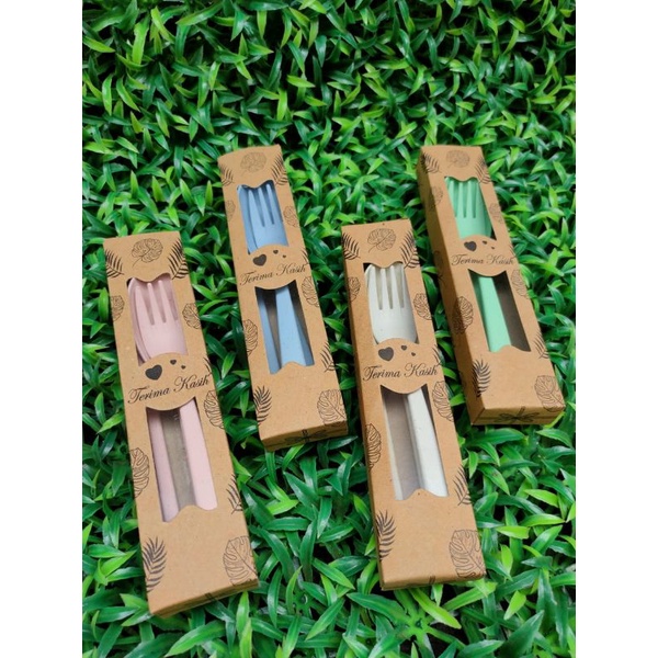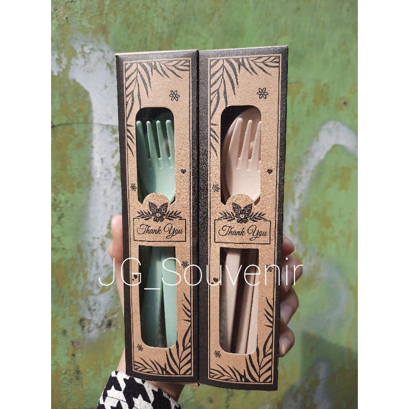 Souvenir Pernikahan Murah Sendok Garpu Sumpit serat Jerami IMPORT Kemas Box Rustik