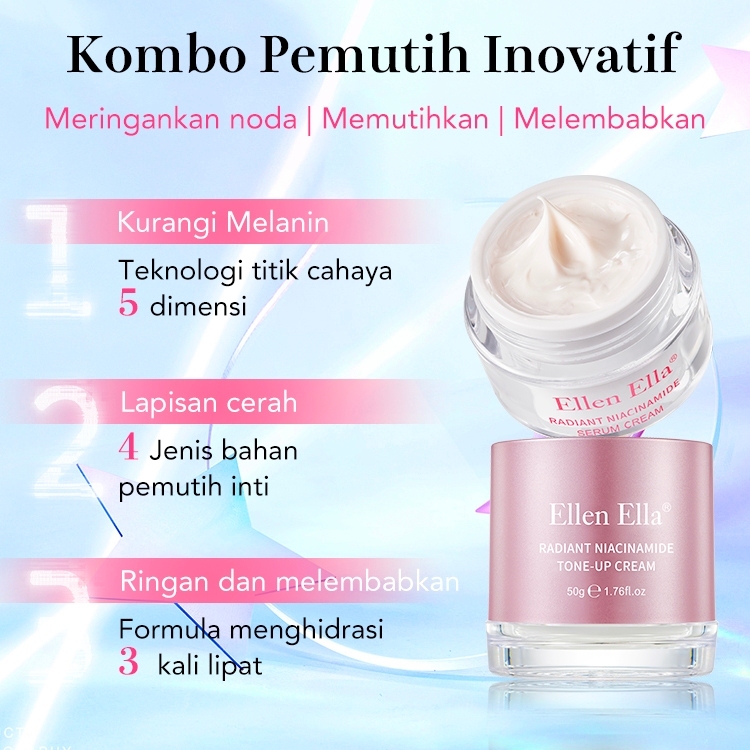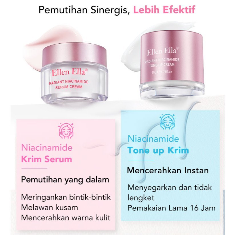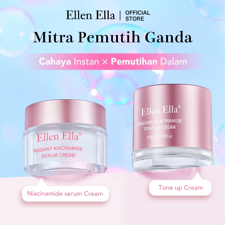 ELLEN ELLA Mitra Pemutih Bercahaya moisturizer 30g + Tone Up Cream 50g niacinamide krim wajah pemutih cream pelembab wajah Whitening Glowing Skin Ligheten Spots krim pemutih wajah Kulit Sensitif Moisturizer Face Cream pelembab wajah Day Night Cream
