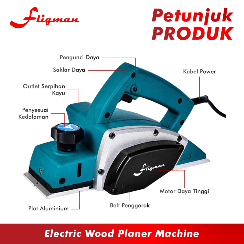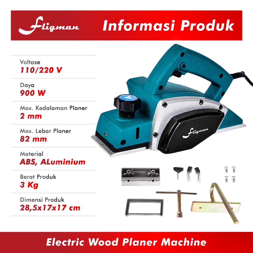 Mesin Serut Kayu Elektrik N1900B 900W Fligman | Electric Wood Planner Lebar Planer 82mm Bergaransi