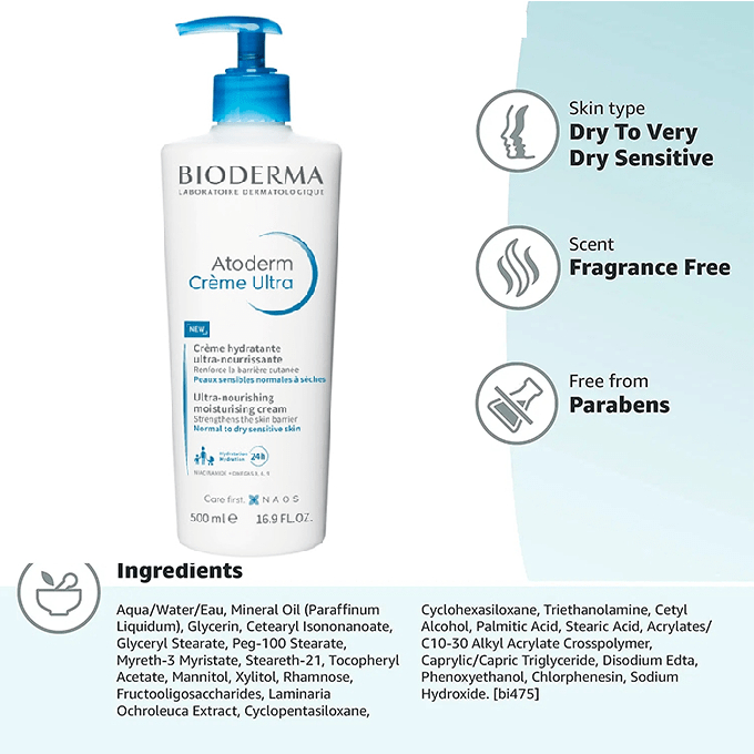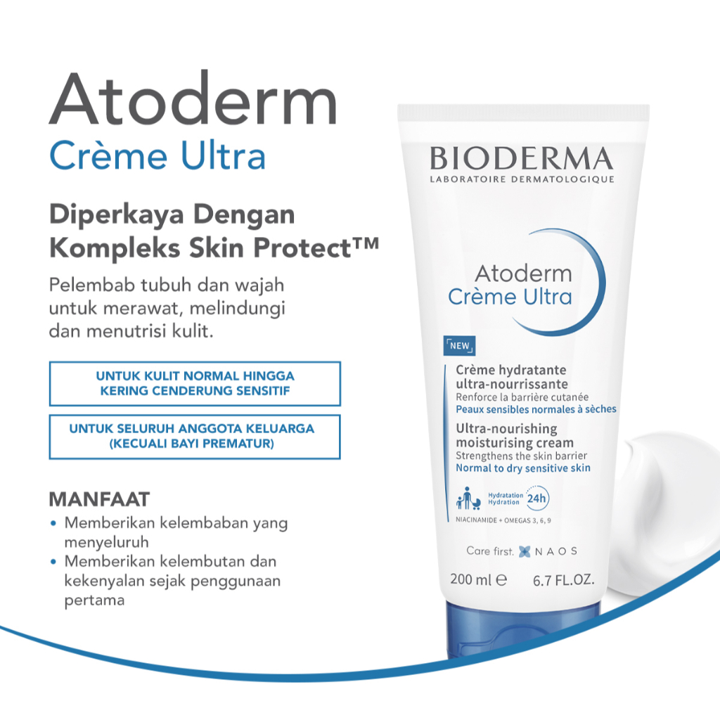 Bioderma Atoderm Creme Ultra (200ml/500ml) Face/Body Moisturizer untuk Kulit Normal / Kering