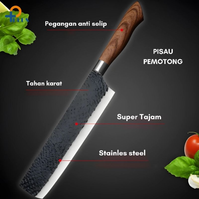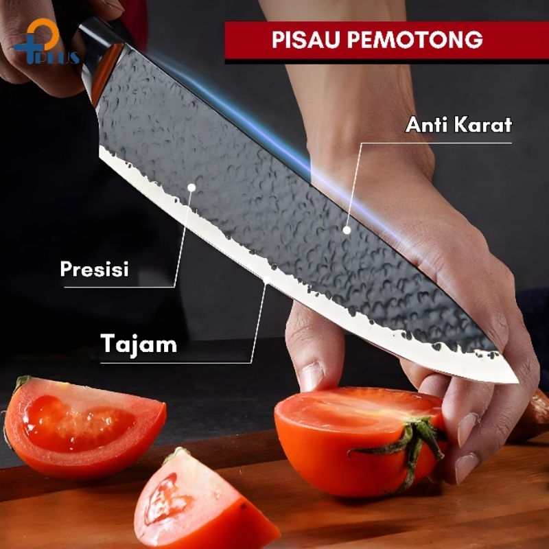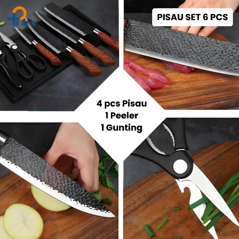 [ PpLUS ] Pisau Dapur Set Tajam Kitchen Knife Set Black Knife Diamond Set 6in1