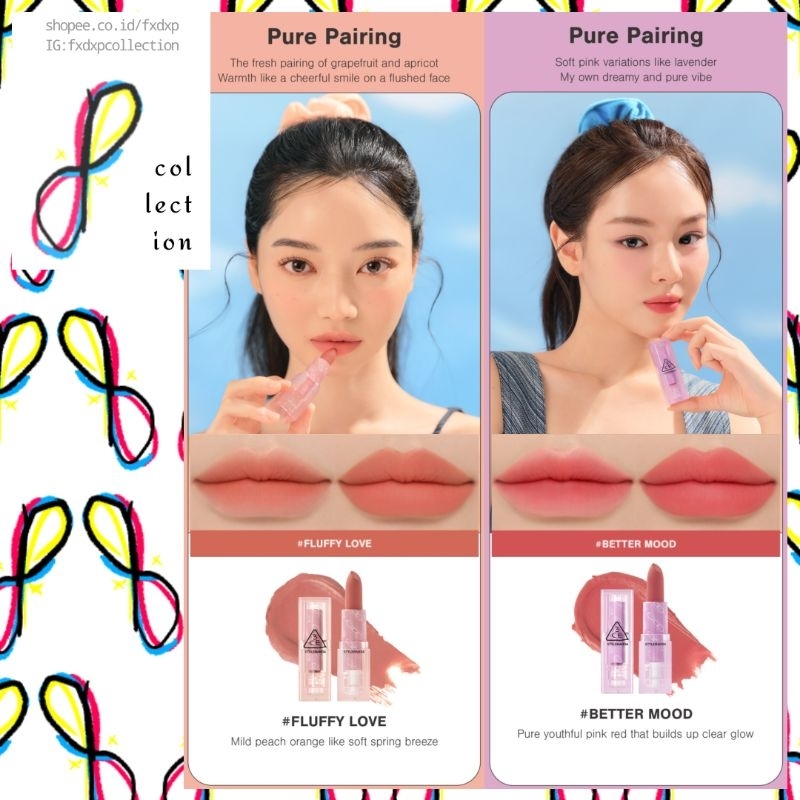 3CE Soft Matte Lipstick 3.5g ( 26 Color ) including Clear Layer / Warm vs Cool / Deep Under More Deep / Pure Pairing Edition ( Soft Touching High Pigment Long Lasting Stylenanda )