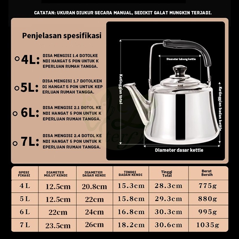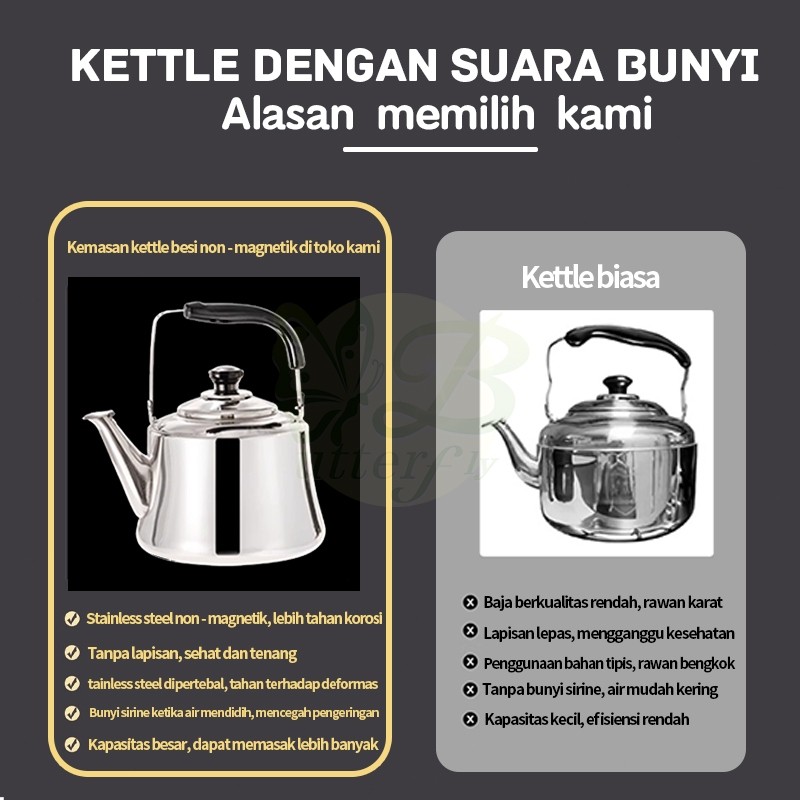 Teko Stainless Steel Tahan Karat Teko Siul Whistling Kettle 4 Liter 5 Liter 6 Liter 7 Liter