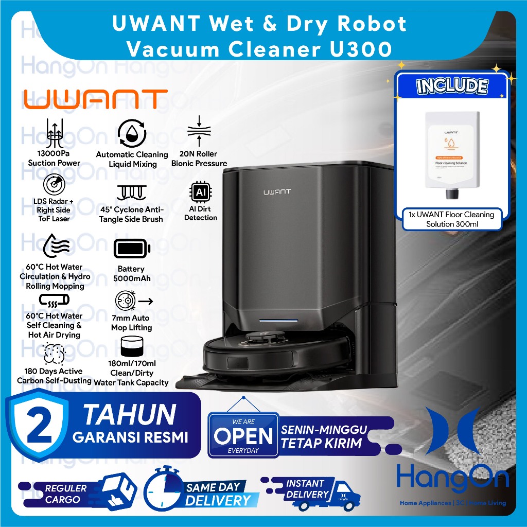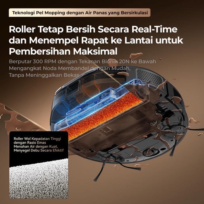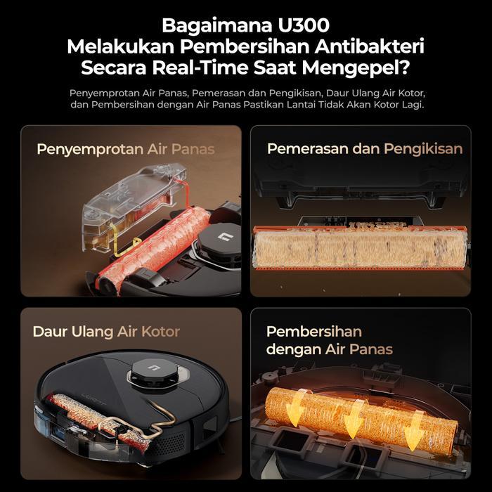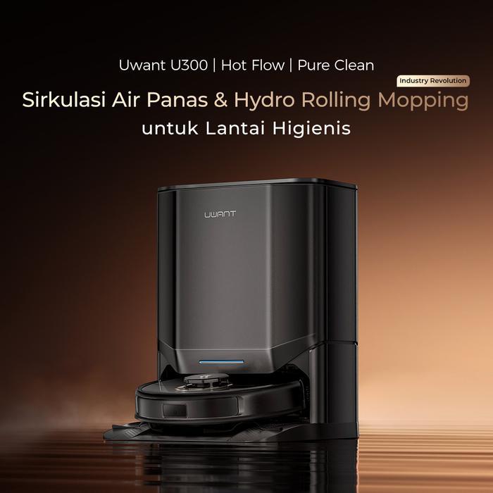 UWANT U300 Wet & Dry Robot Vacuum Cleaner Hydro Rolling Mopping 13kPa 60°C Hot Water Self Cleaning & Hot Air Drying 13000Pa 7mm Auto Mop Lifting AI Dirt Detection 20N Roller Bionic Pressure Automatic Cleaning Liquid Mixing