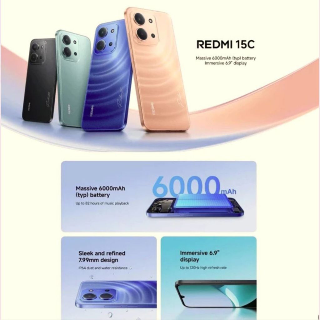 Xiaomi Redmi 15C (8GB/256GB) | Baterai besar 6000mAh dengan pengisian daya 33W | Desain ramping dan elegan | Layar Imersif 6.9"