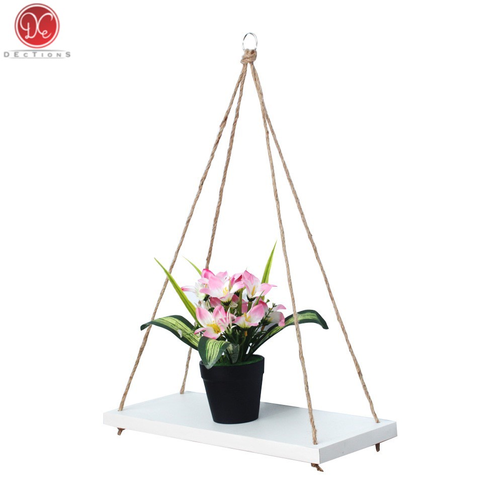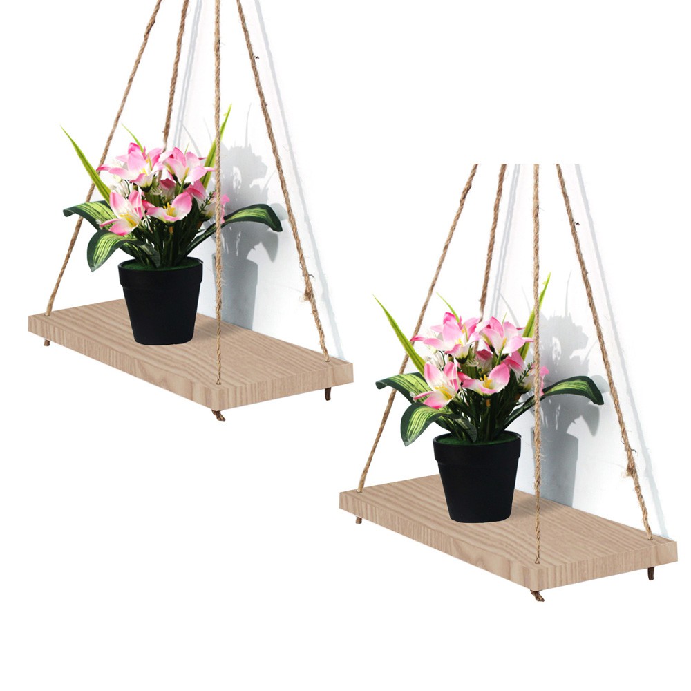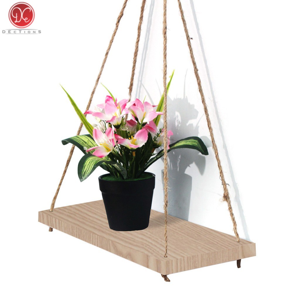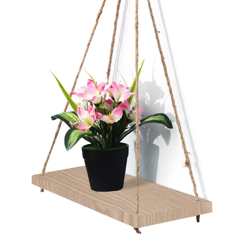 Dections Rak Bunga Dinding Aesthetic Minimalis Tali Gantung 40x15cm Bahan Kayu