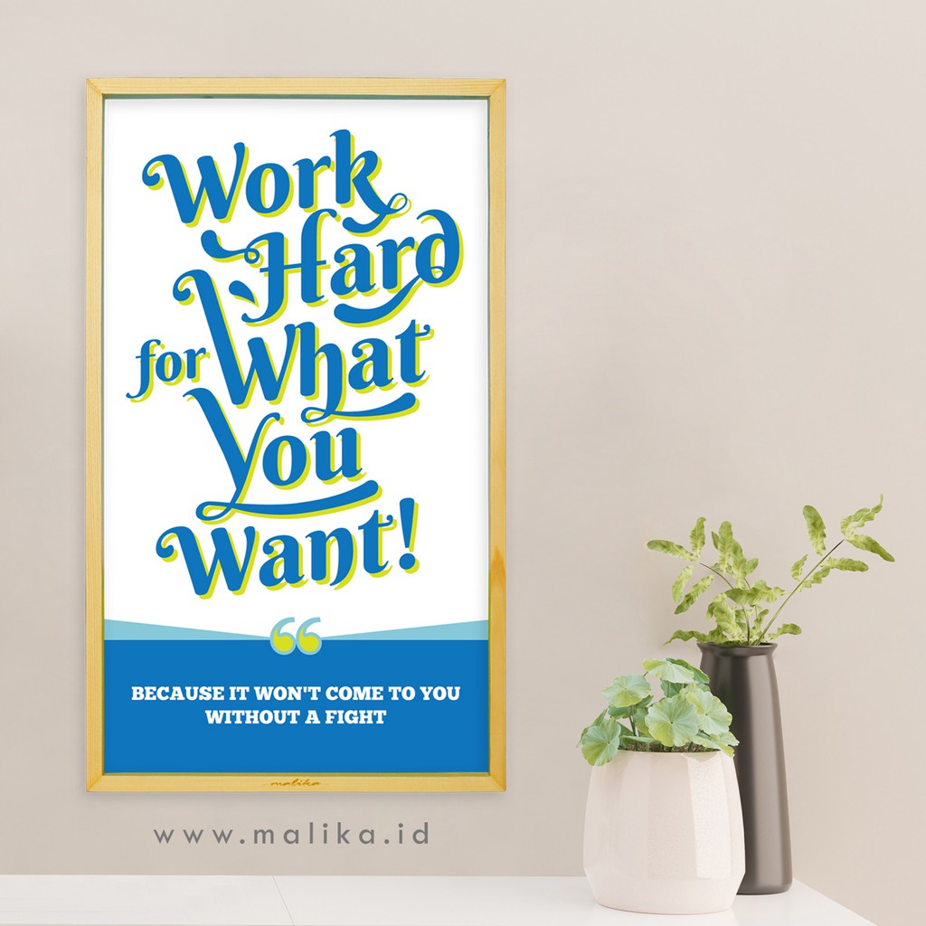 Dekorasi Dinding Paper Printing 'Work Hard' Poster Quotes Motivasi