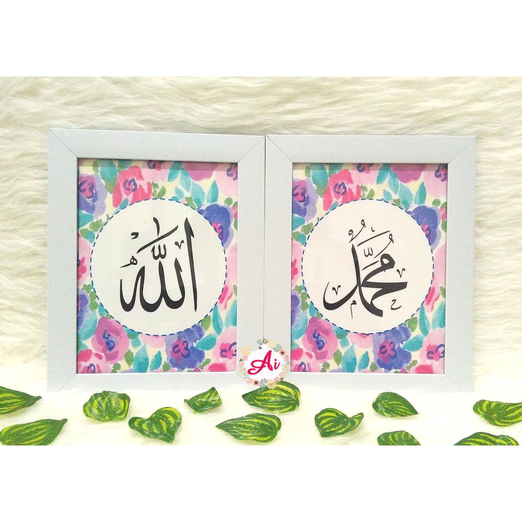 Dekorasi Kaligrafi Motif Bunga - Poster Kaligrafi Allah dan Muhammad