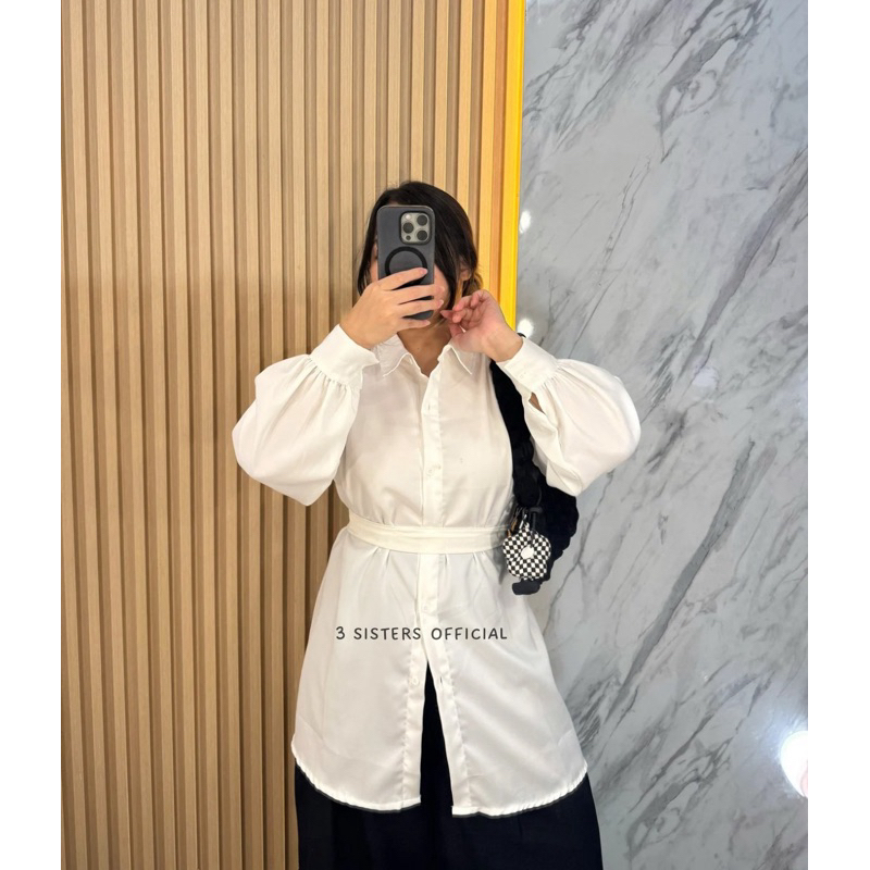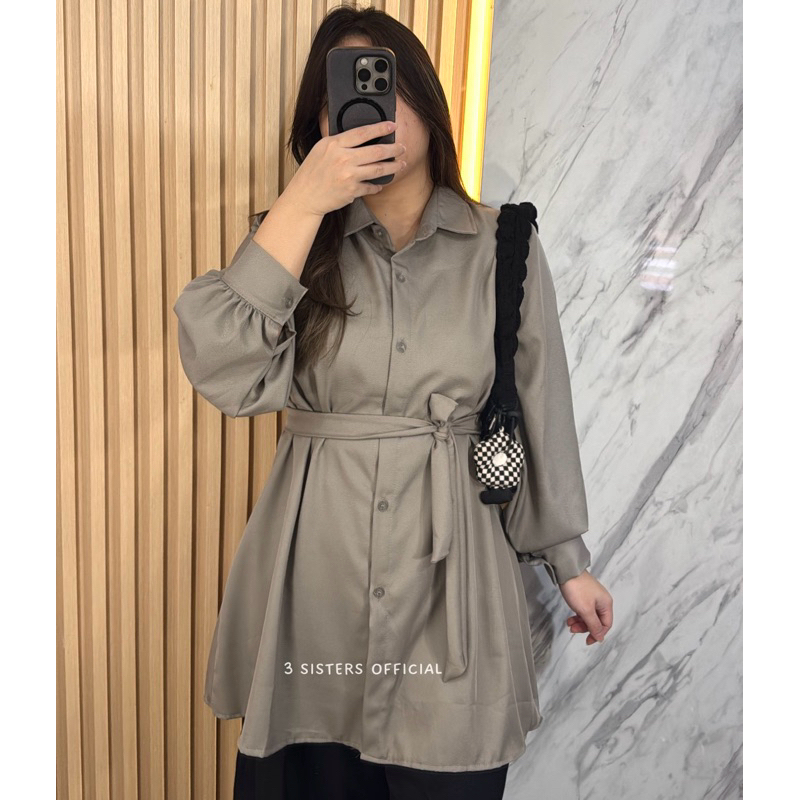 3sisters - Atasan Kemeja Belt Premium Fashion Blouse Muslim Wanita