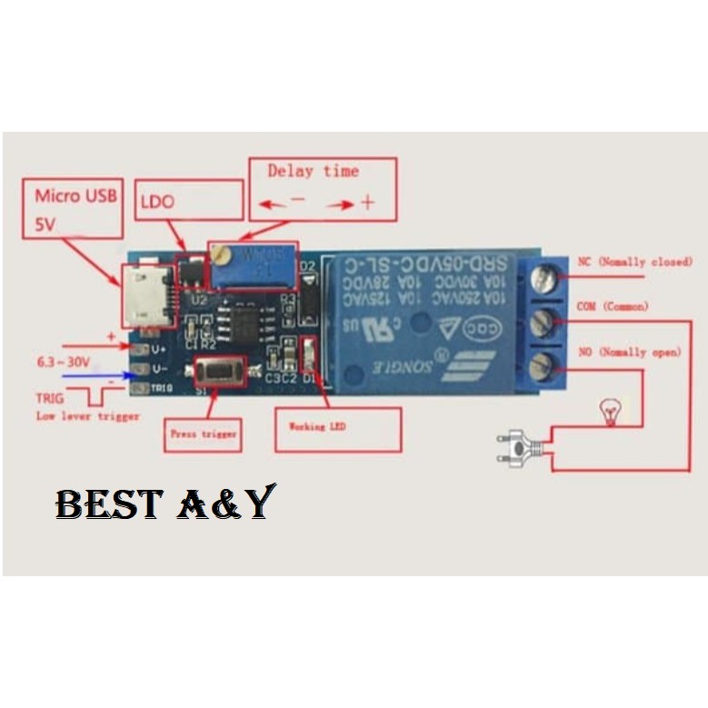 Delay Relay Timer Module Trigger Delay Switch Micro USB Power 5-30v out 10A 250VAC