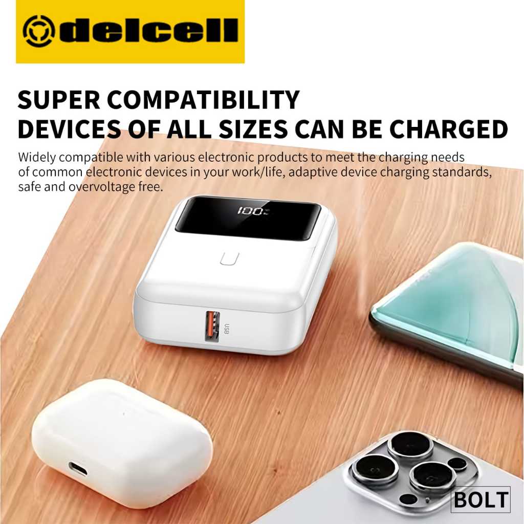 Delcell Bolt Powerbank Mini 10500mAh Fast Charging 22.5W Digital Display QC + PD 2 Tahun garansi