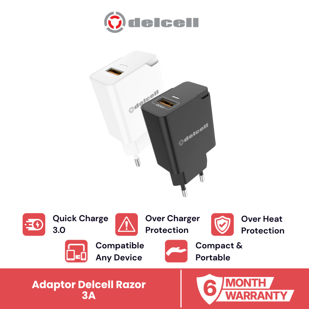 Delcell Razor Adaptor Charger Quick Charge QC 3.0 18w 3A Original - Garansi 6 Bulan