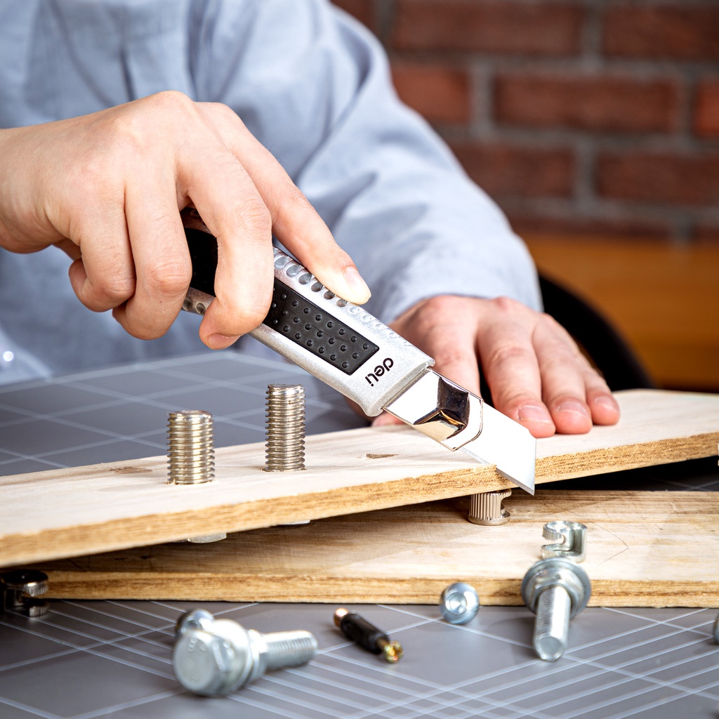 Deli Alluminium Alloy Utility Knife / Cutter Alumunium 18mm Pisau SK2 EDL4255