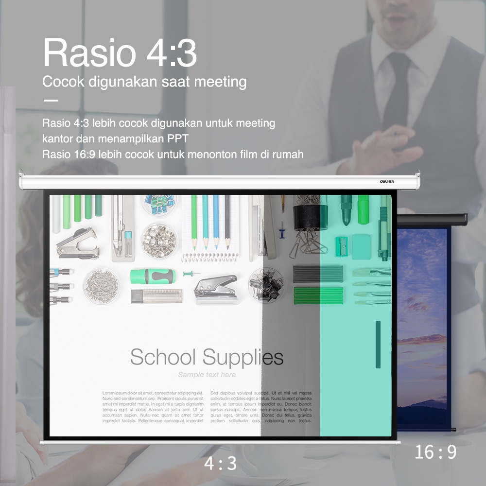 Deli Automatic Screen Projector Layar Proyektor Otomatis 120 inch Dengan Remote Bisa Digantung 50441