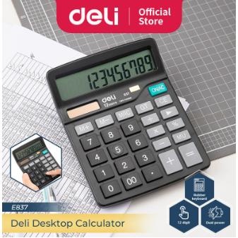 Deli Desktop Calculator / Kalkulator Meja 12 Digit Dual Power Layar LCD TE837C