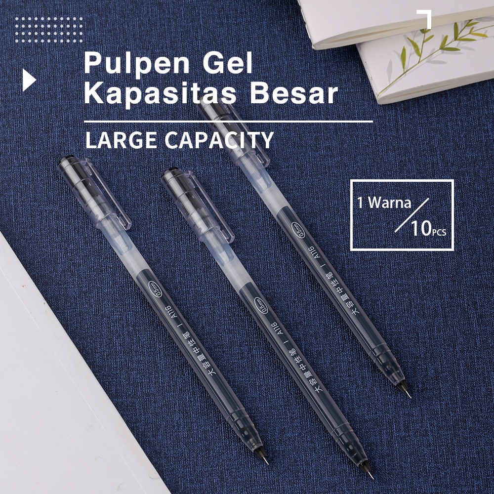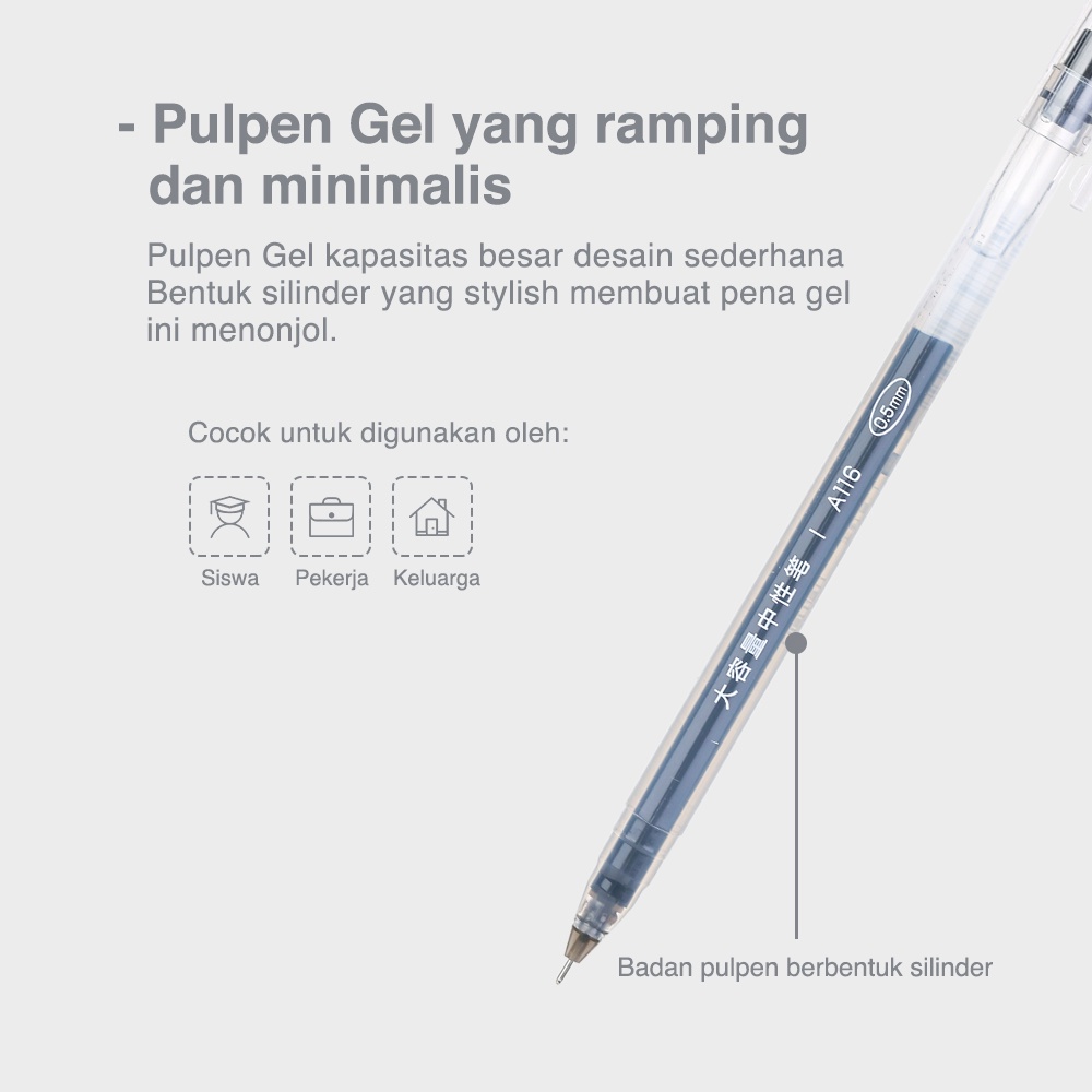 Deli Gel Pen Pulpen Gel kantor kuliah sekolah Warna Hitam Biru Merah 0.5mm warna cerah terang penulisan tulisan halus kapasitas tinta besar LARGE INK CAPACITY, nyaman di genggam anti bocor tidak macet dan tidak luntur A116