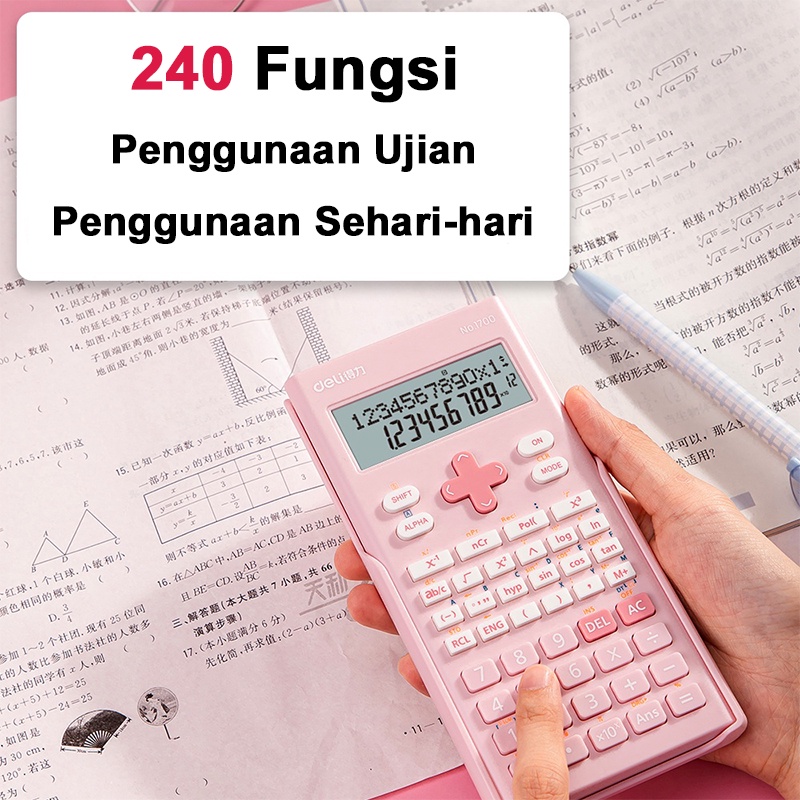 Deli Kalkulator Scientific 240 Fungsi Kalkulator Ilmiah Mini Lucu 12 Digit Tampilan LCD 2 Baris Scientific Calculator