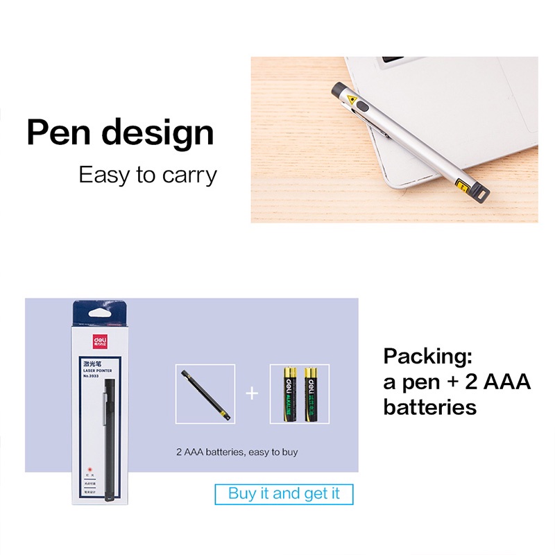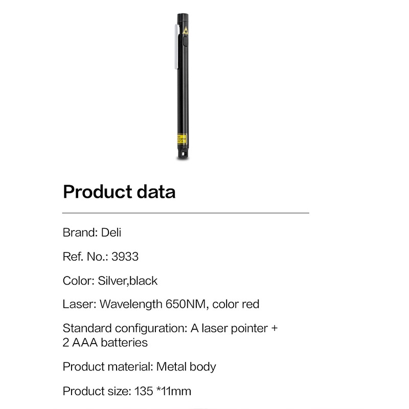 Deli Laser Pointer Wireless Pointer Presentasi Laser Merah Hitam 650nm Pointers Laser Pen