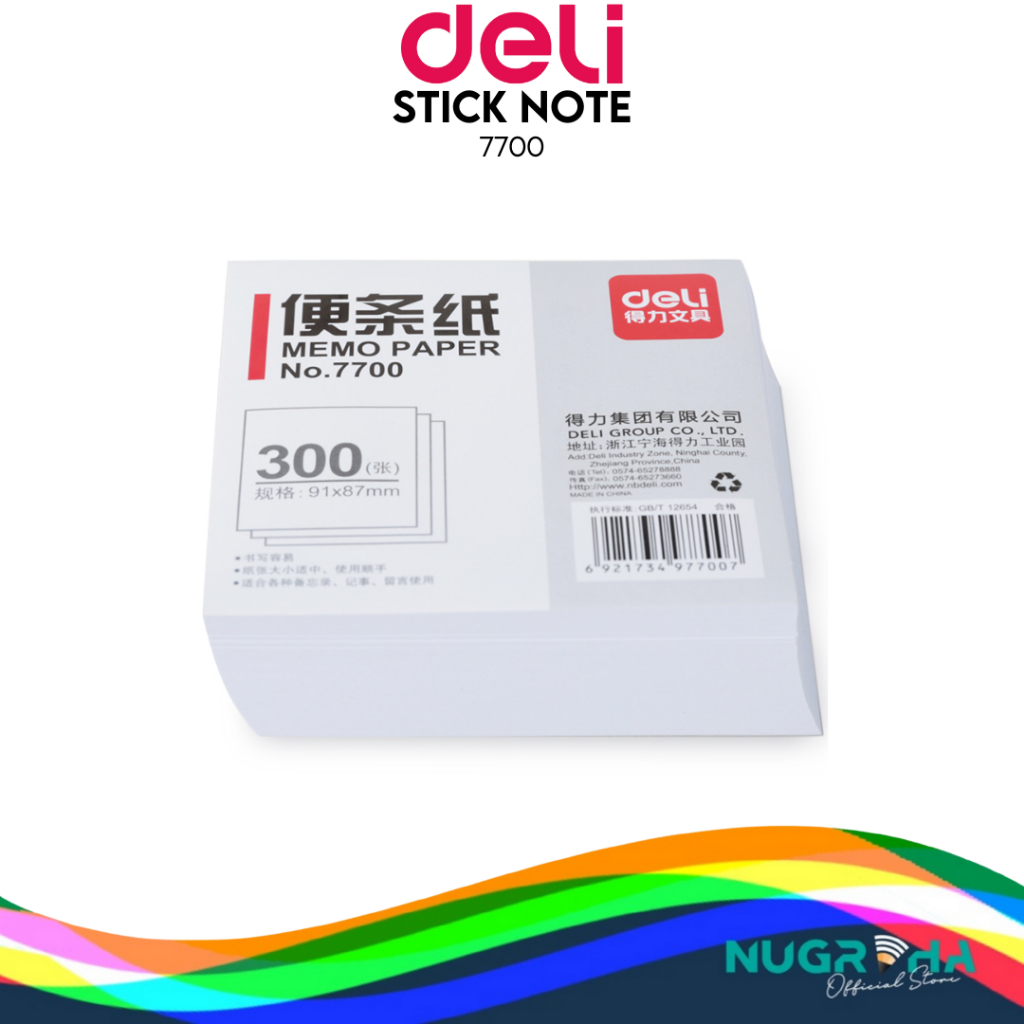 Deli Memo Paper / Kertas Memo 300 Lembar Warna Putih Tanpa Kotak 7700 7701