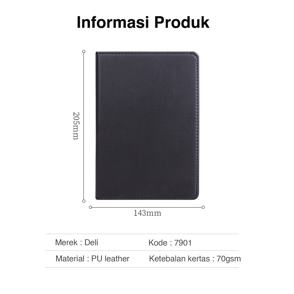 Deli Notebook Buku Catatan Cover Kulit 80/90/120 Lembar, Terdapat Tali Penutup 790X 791X 799X