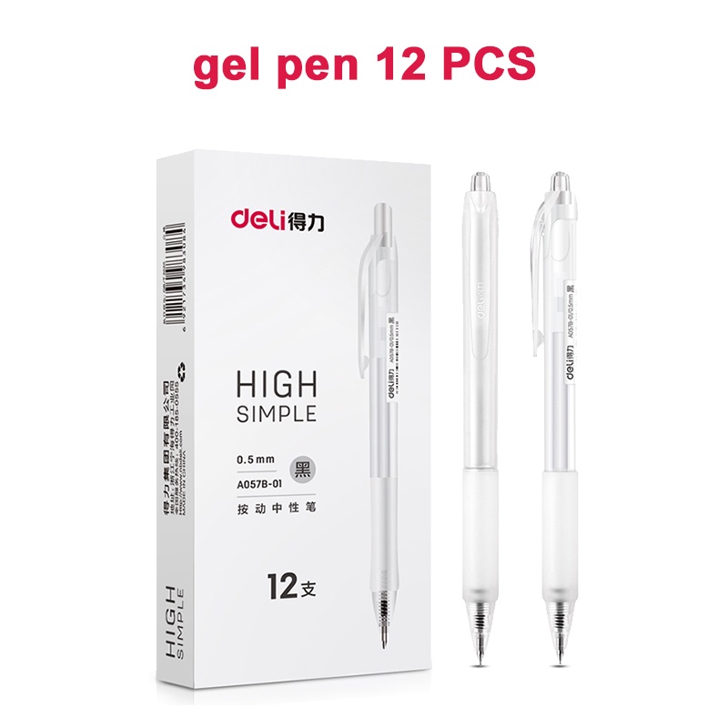 Deli Pulpen Gel Tinta Hitam Gel Ink Pen 0.5mm Dapat Ditarik 12pcs Isi Ulang Yang Dapat Diganti Ballpoint Gel Pen