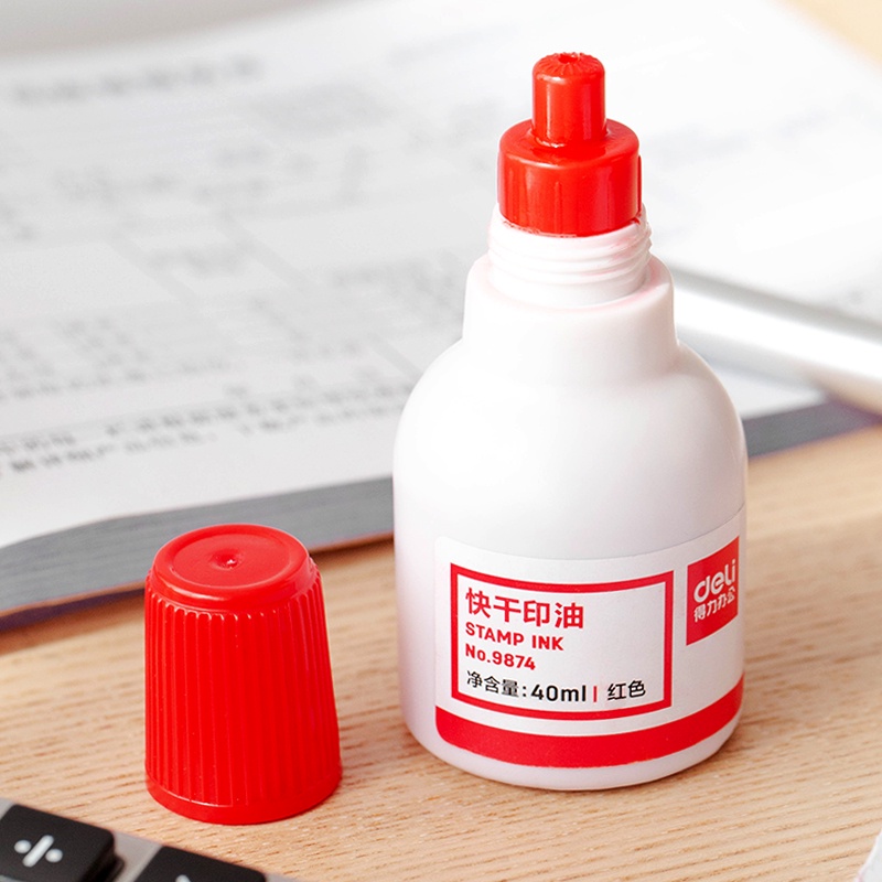 Deli Red Stamp Ink / Tinta Stempel Merah 40ml Anti Air 9874