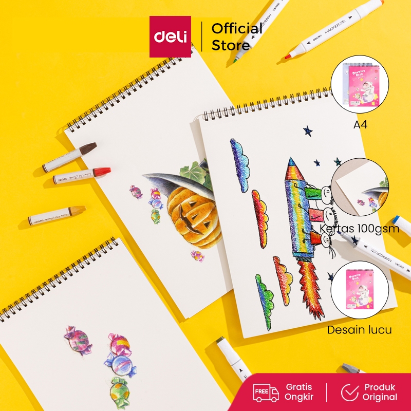 Deli School Drawing Book / Buku Gambar Jilid Spiral Kertas Tebal 100 GSM 30 Lembar 73387