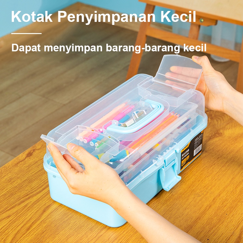 Deli Tool Box Plastik Kotak Perkakas Tool Box Mini 13 Inch Penyimpanan Lipat 3 Lapis Alat Pertukangan Tools Box