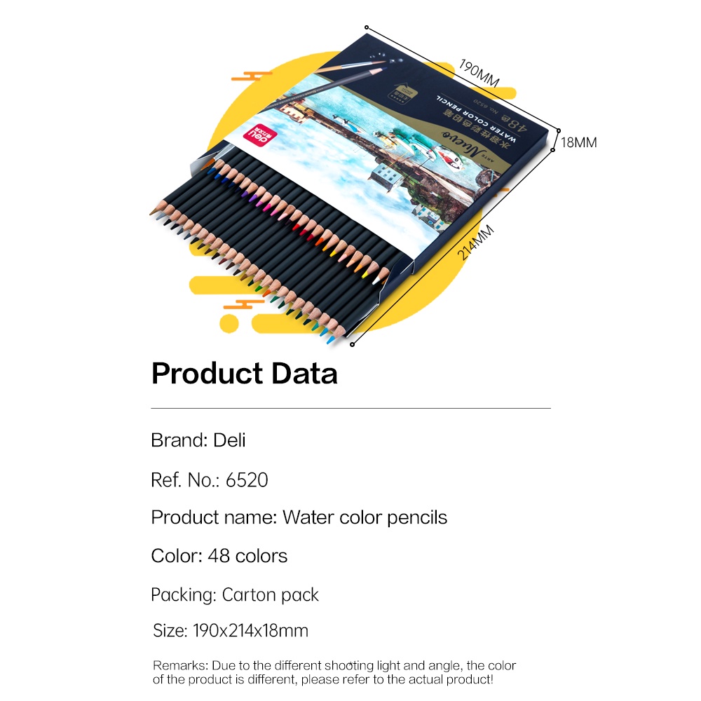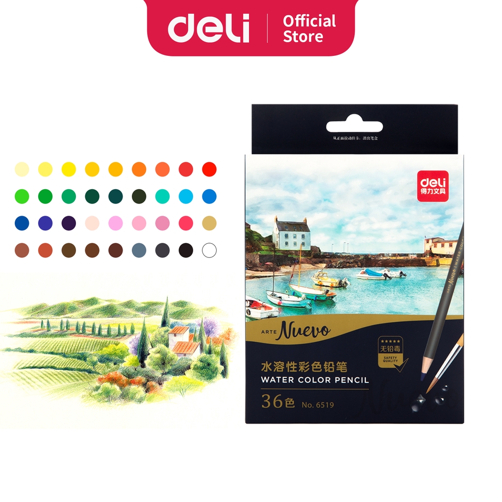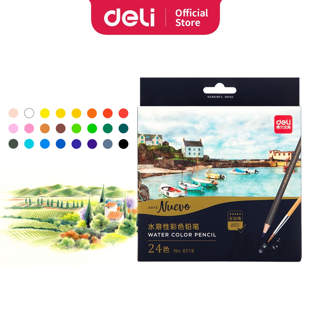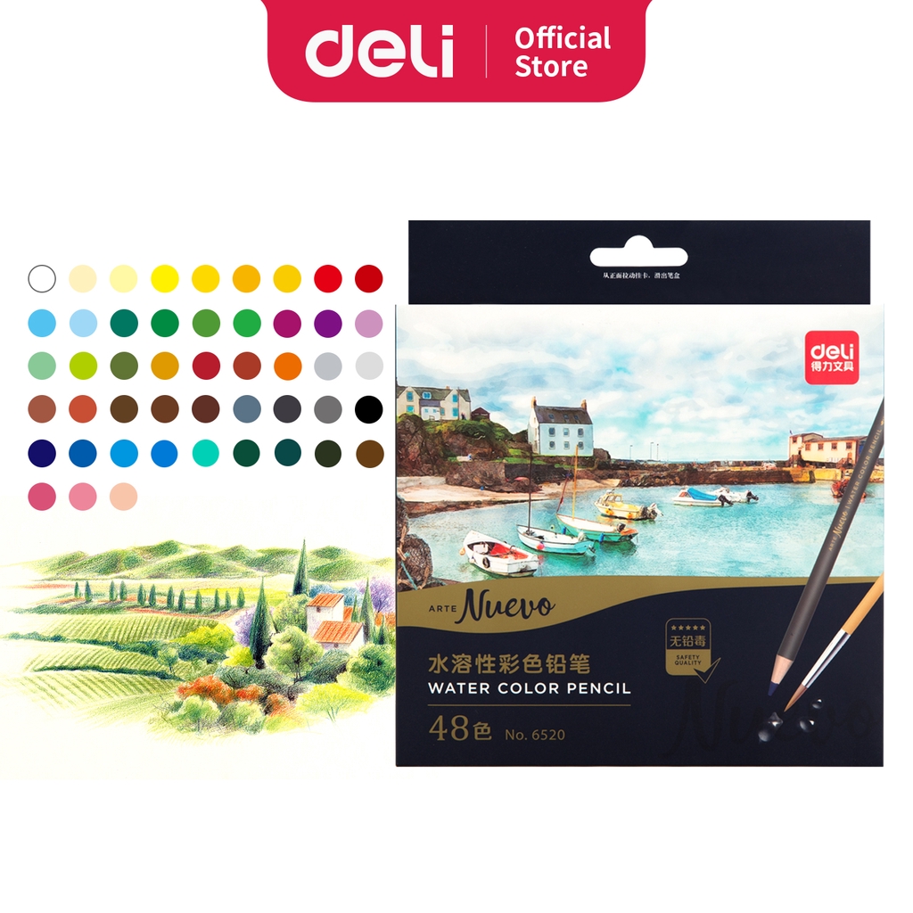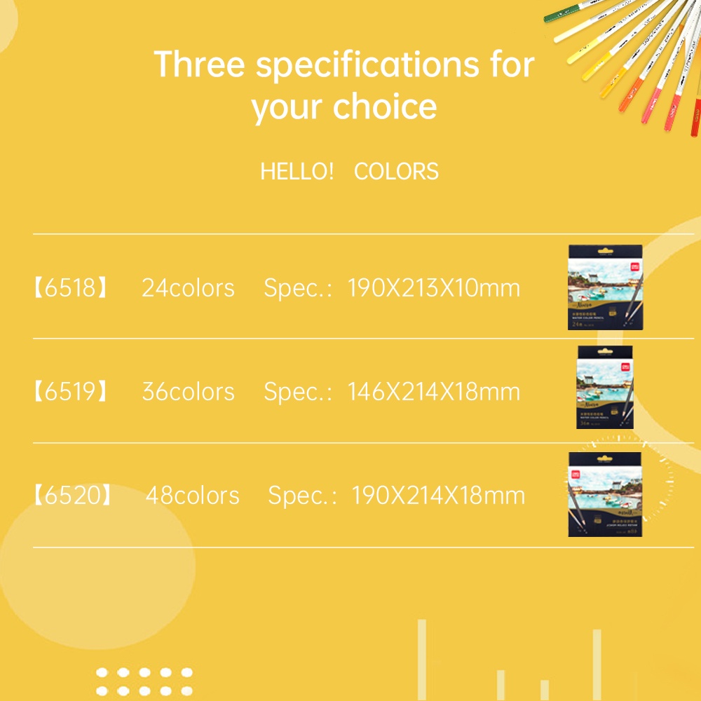 Deli pensil warna 24/36/48C watercolor dengan kuas non-toxic, dapat dicuci dan teknologi hybrid 65X0