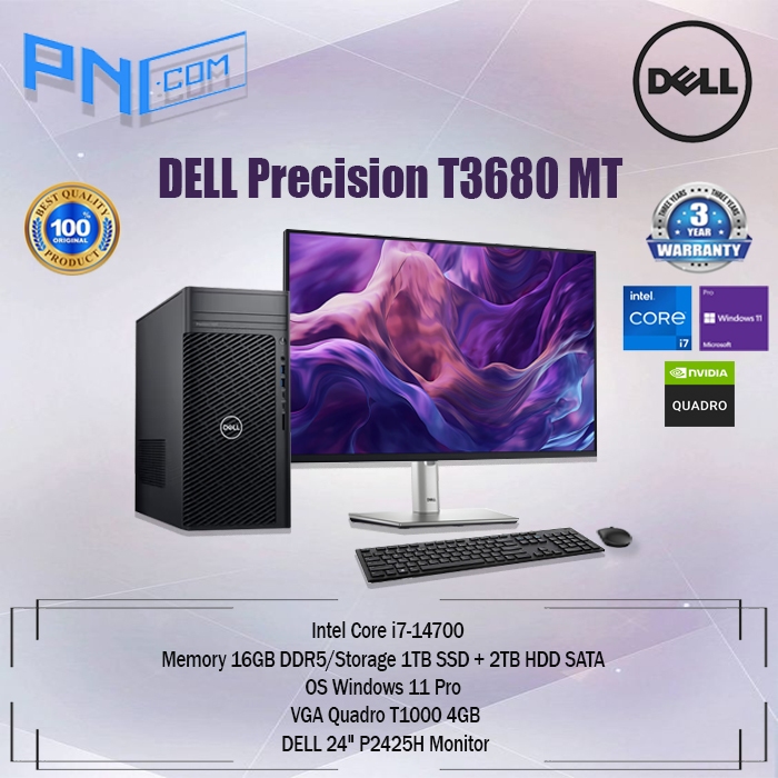 Dell Precision T3680 Tower MT i7-14700 16GB 1TB SSD + 2TB HDD SATA WIN11Pro VGA T1000 4GB 3Yr P2425H