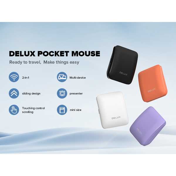 Delux MF10 2in1 Foldable Multi-Device Bluetooth Mouse Lipat Laser Presenter Touch Scroll