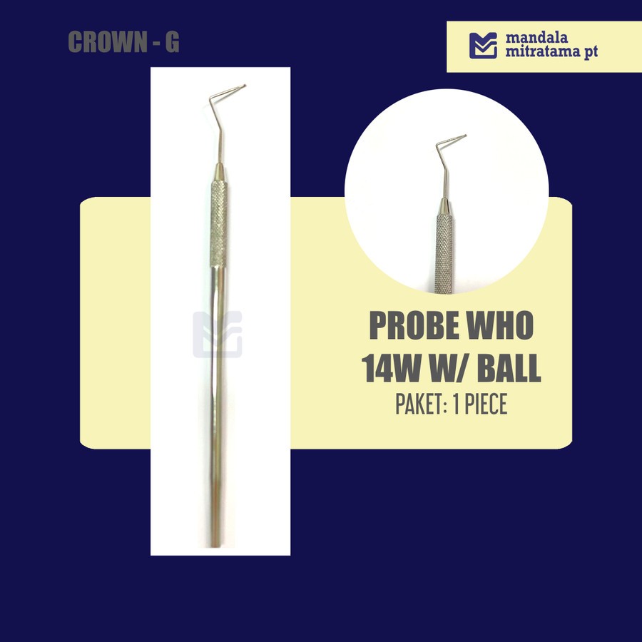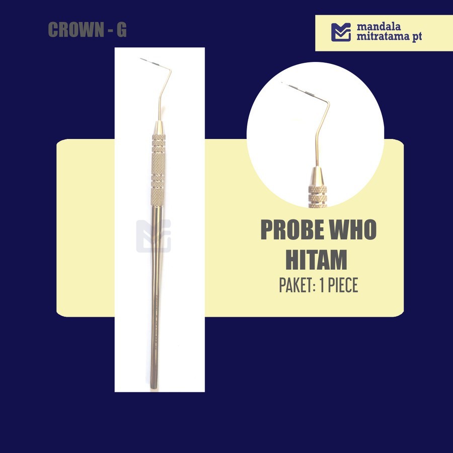 Dental Probe Single / Probe Crown - Probe Double - Probe WHO Hitam -Probe WHO with ball - Probe WHO without ball - Probe periodontal UNC Crown-G | Mandala Mitratama