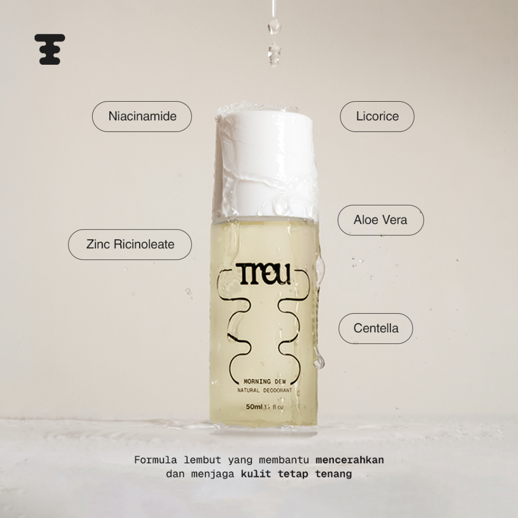 Deodorant Natural Water Based Tanpa Aluminium | Gentle & Tidak Bau - TREU Morning Dew 50ml
