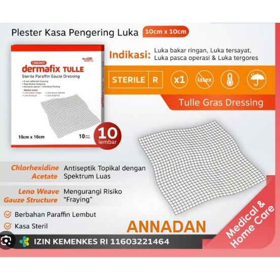 Dermafix Tulle 10x10cm Paraffin Gauze Onemed isi 10 Kasa Steril Dressing Rawat Luka