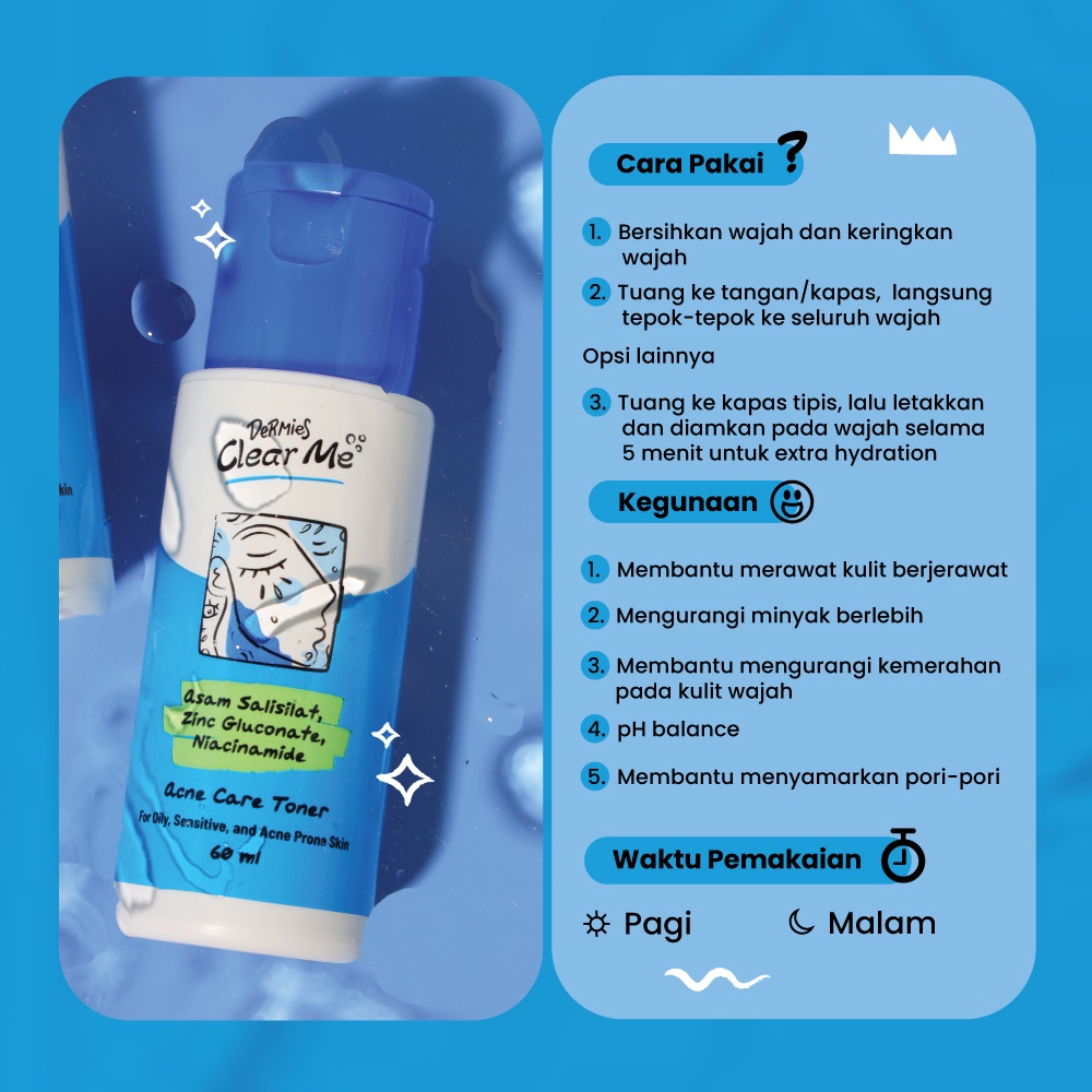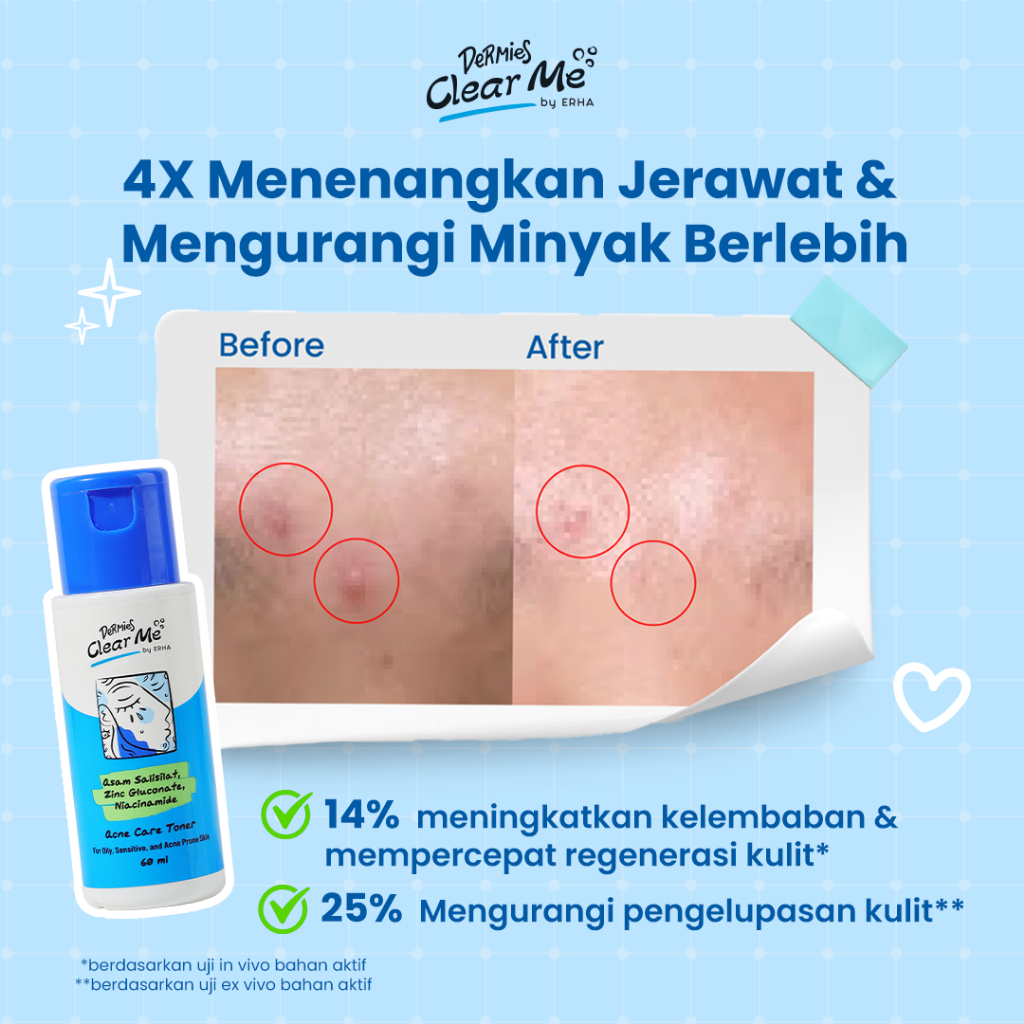 DERMIES Clear Me by ERHA Acne Care Toner - Toner Wajah untuk Menenangkan Kulit Kemerahan Melempabkan dan Merawat Jerawat Tanpa Alkohol Salicylic Acid Zinc Gluconate 60ml