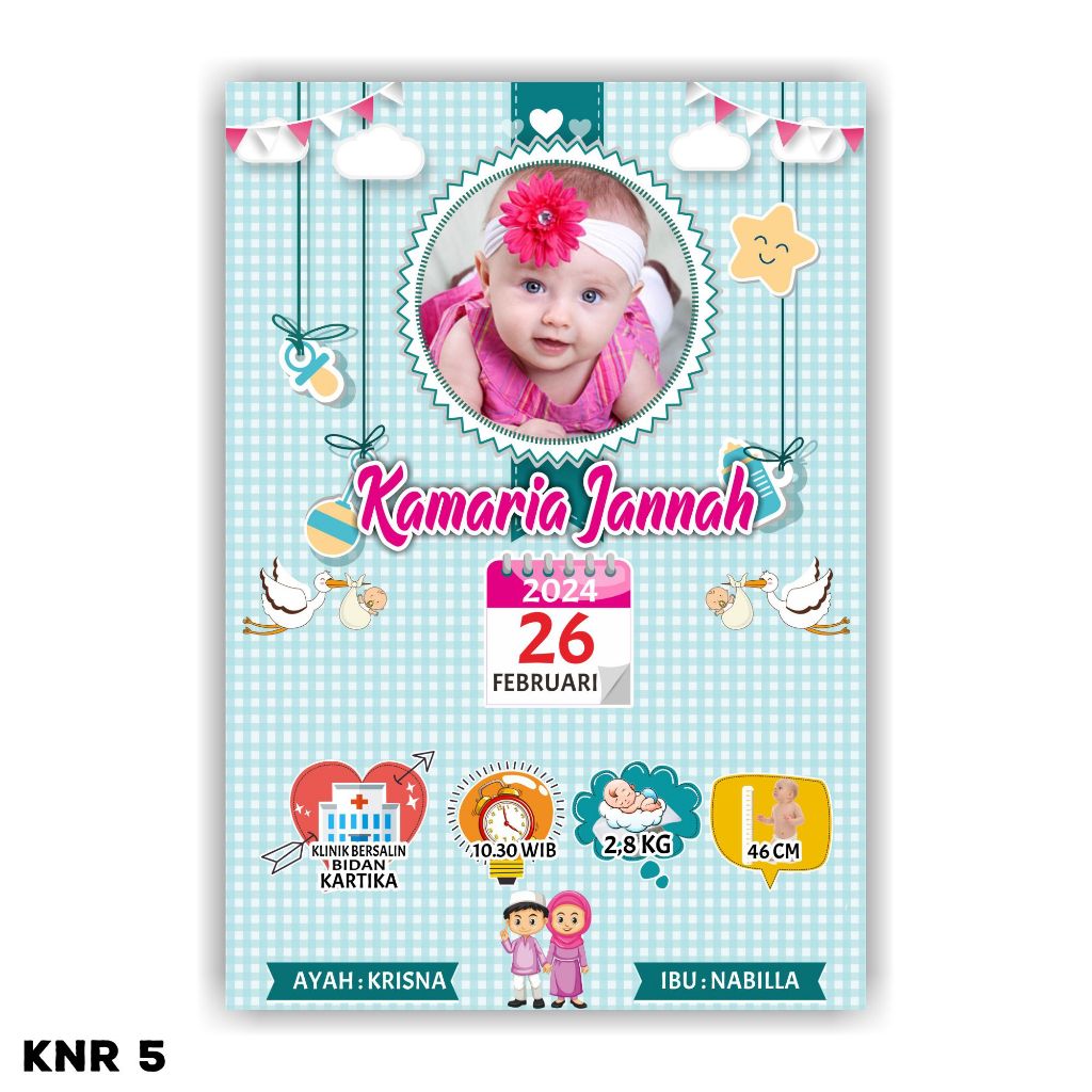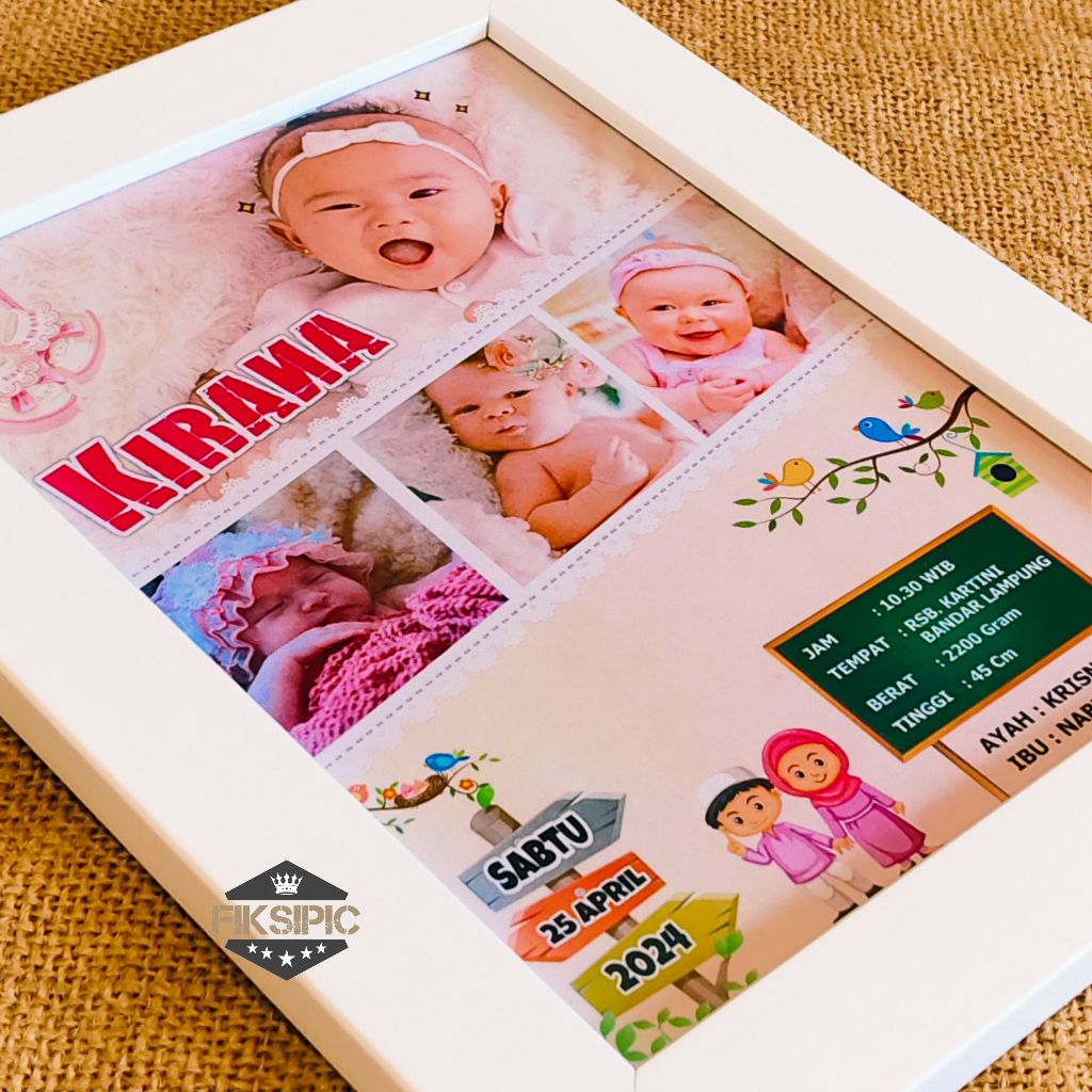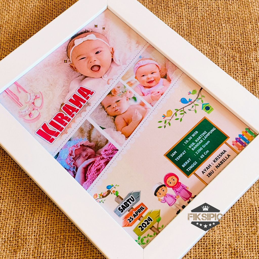 Desain Biodata Bayi + Cetak Bingkai 11R Bio Baby - Biodata Kelahiran Bayi - Baby Bio | Fiksipic
